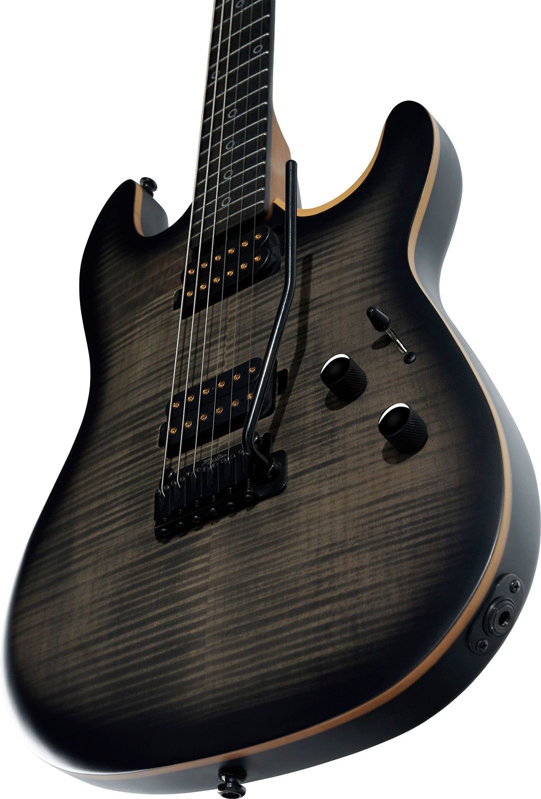 Op elektronisch vlak is de gitaar uitgerust met custom-voiced Alnico V humbuckers, die krachtige en dynamische sounds leveren. Dankzij de push-push toonknop is coil-splitting mogelijk in positie 1 en 5, wat extra veelzijdigheid biedt. De fraai gevlamde esdoorn fineer top maakt het geheel af en is verkrijgbaar in twee opvallende matte afwerkingen.